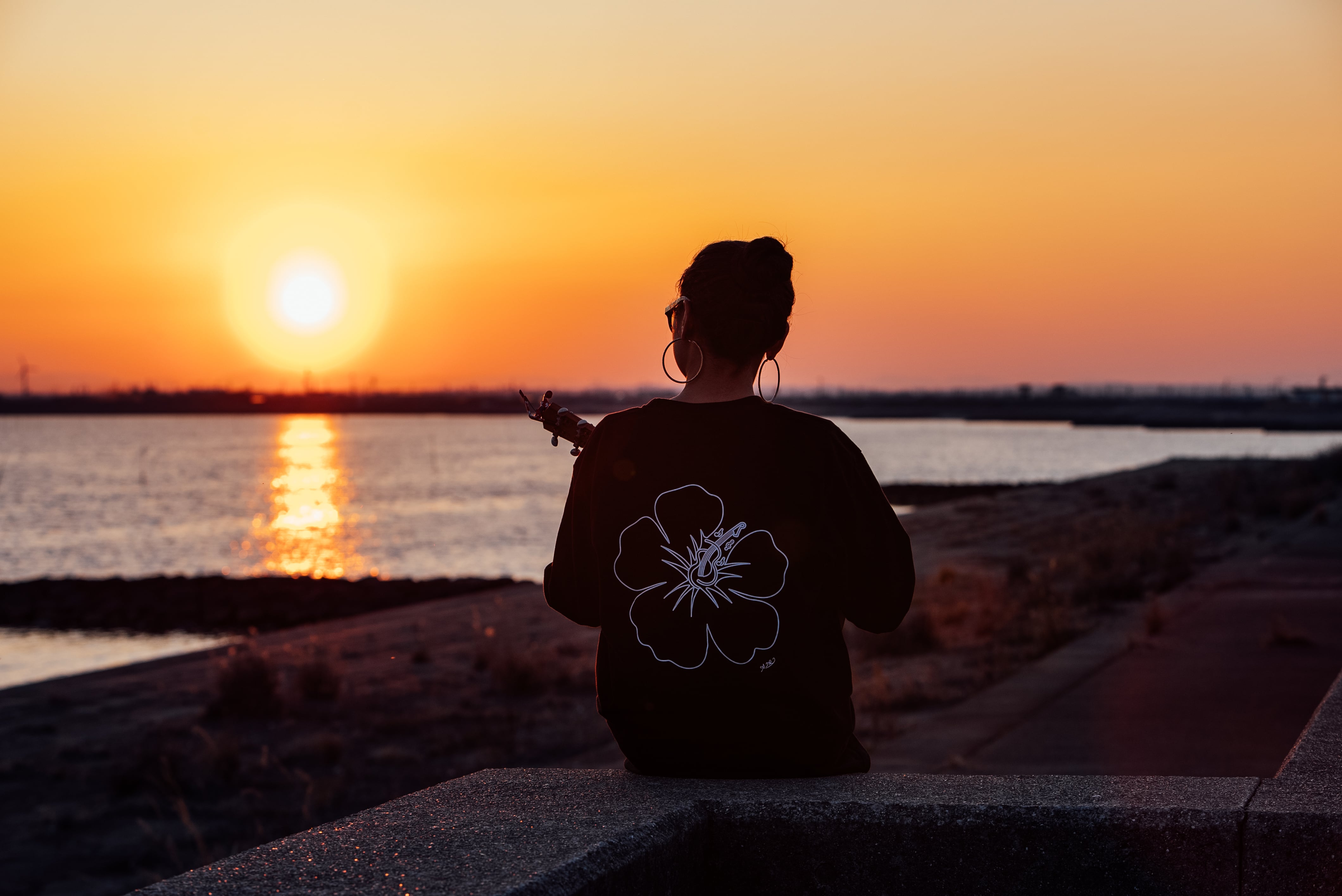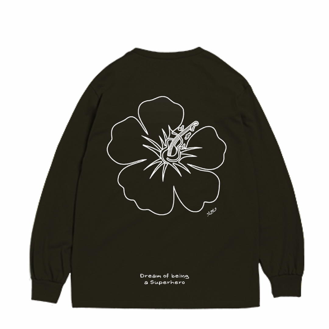 「ハイビスカスの中にウクレレ」というモチーフにしたあいり自らがデザインしたロゴマークが入ったオリジナルロングスリーブ
